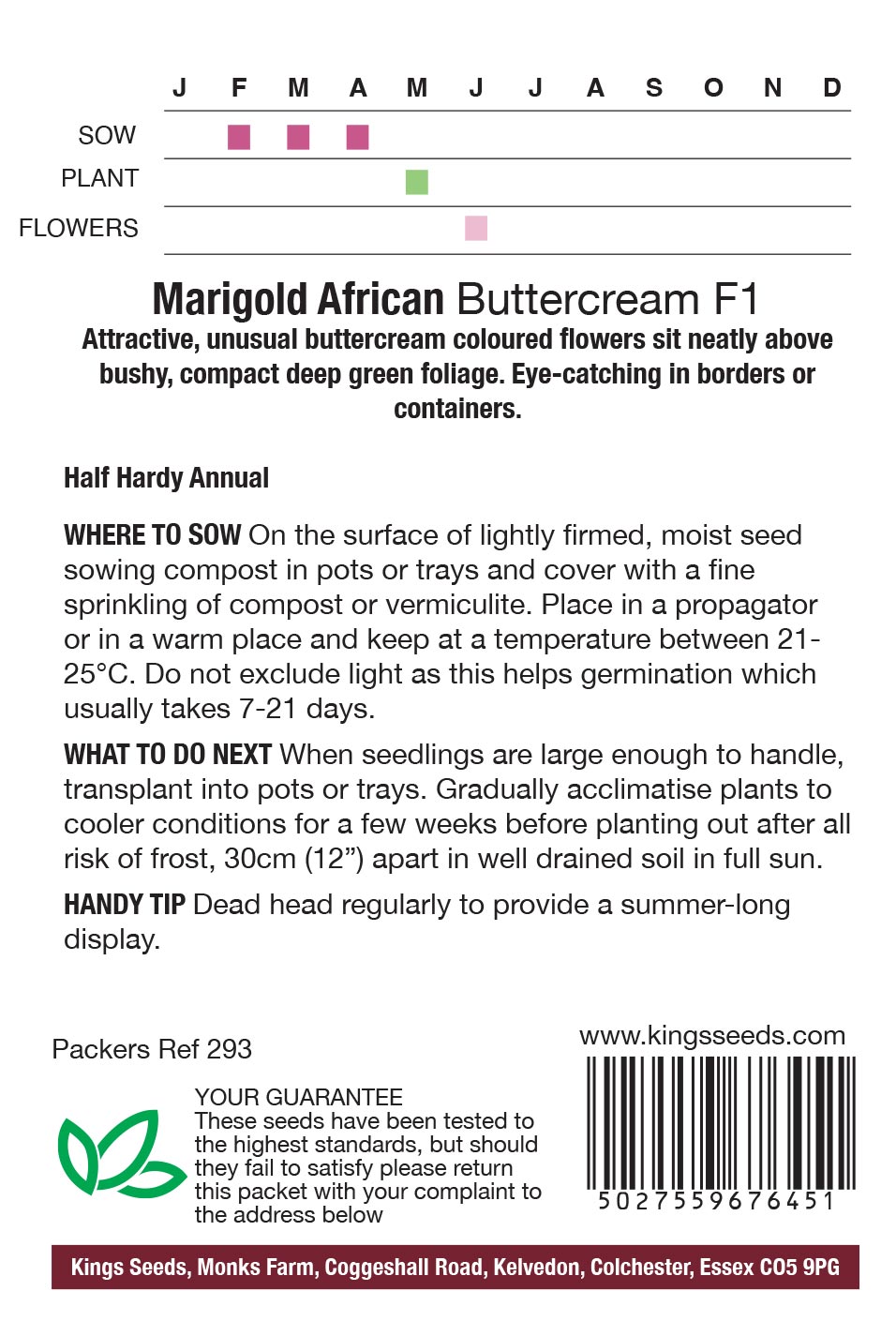 Attractive unusual buttercream coloured flowers sit neatly above bushy, compact deep green foliage. Eye-catching in borders or containers. Ideal replacement for (African) vanilla.