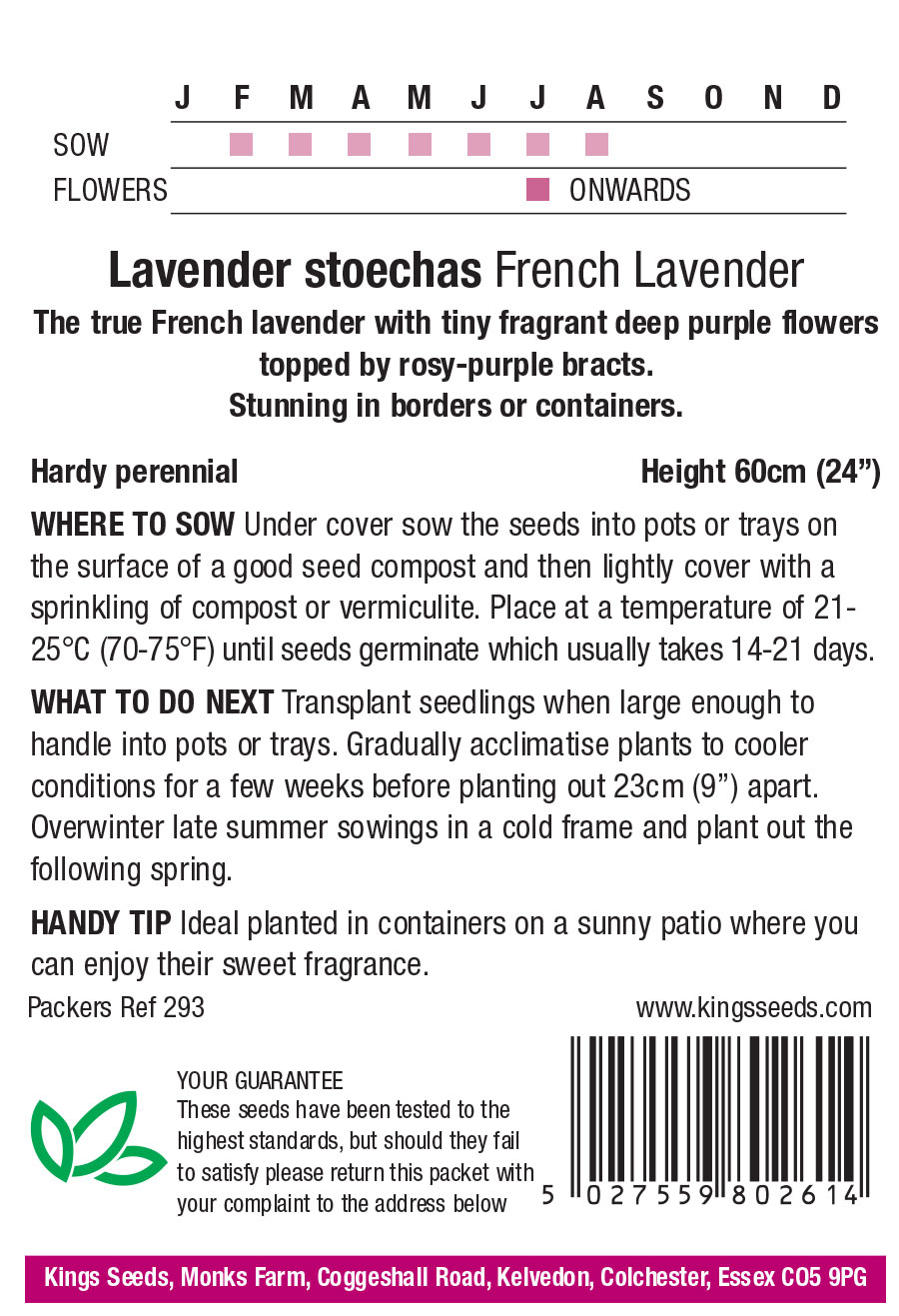 The true French lavender with tiny fragrant deep purple flowers topped by rosy-purple bracts. Stunning in borders or containers, and perfect for attracting the bees!
