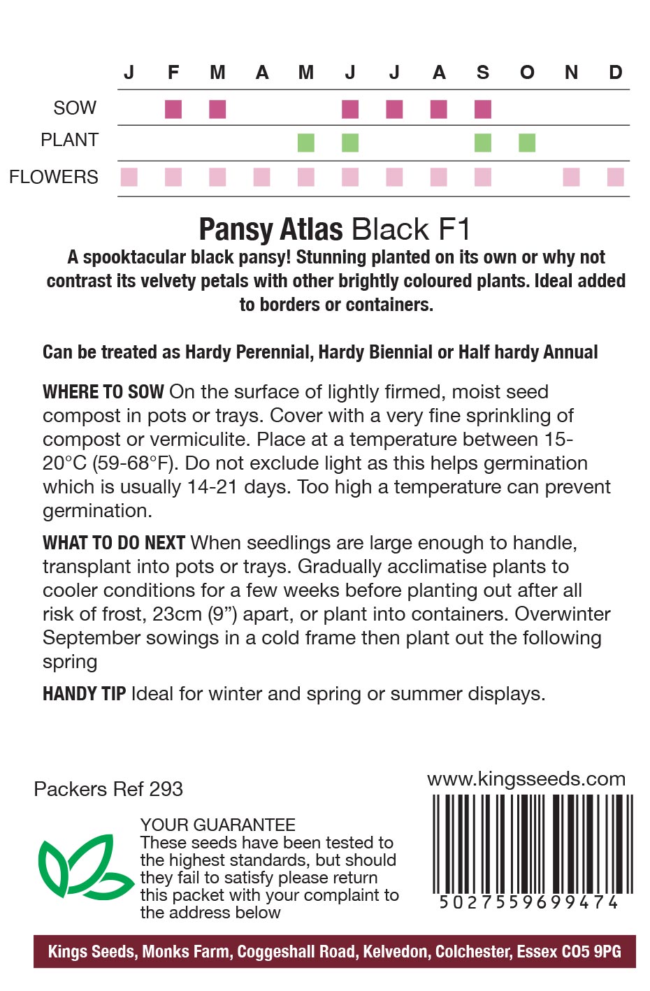 A spooktacular black pansy! Stunning planted on its own or why not contrast its velvety petals with other brightly coloured plants. Ideal added to borders or containers.
