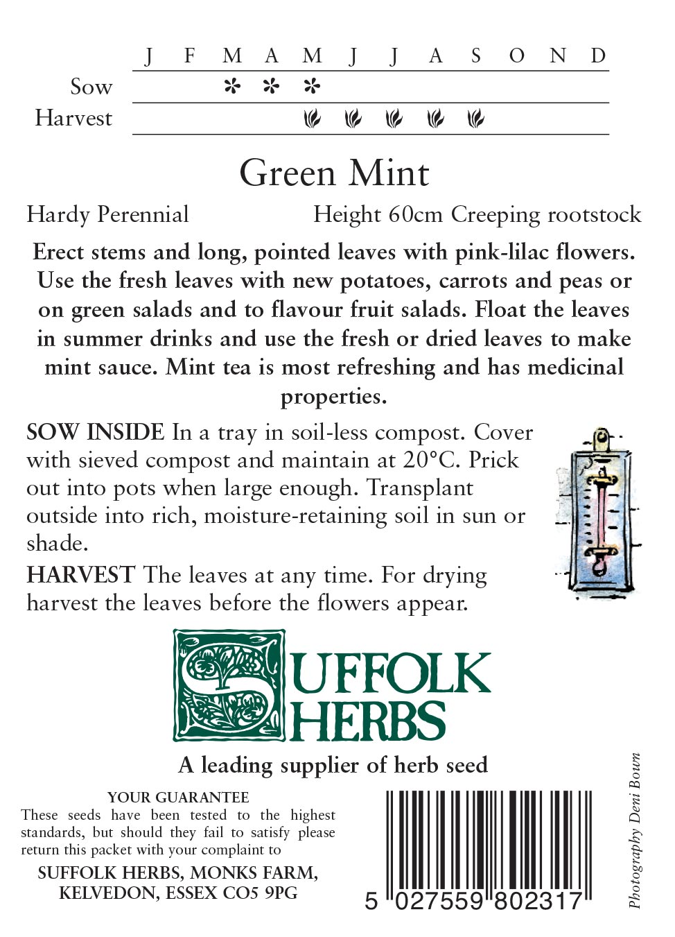 Many uses in food and drink! The classic mint for sauce, particularly with lamb, and great when used to flavour peas and new potatoes. For using in drinks, simply add to a glass of water for a refreshing taste, a herbal tea, or in summer, why not add it to your Pimms or a cocktail.