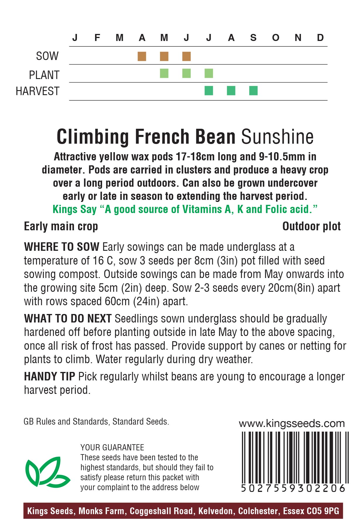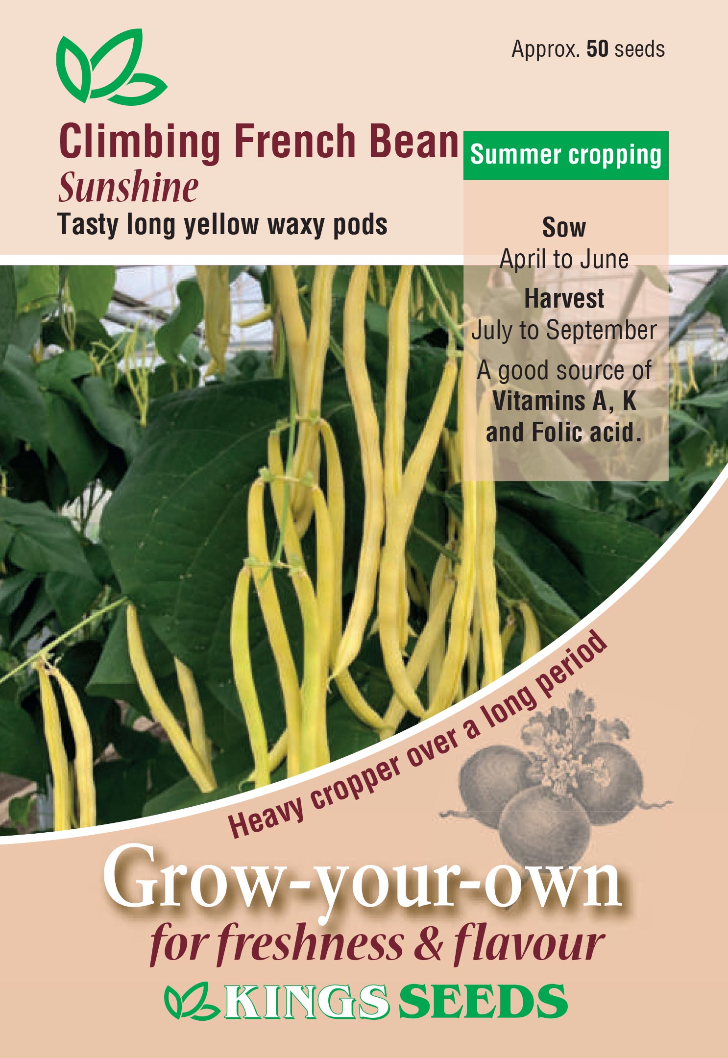 From the same breeder as Cobra, producing 17-18cm long attractive yellow waxy pods, and 9-10.5mm in diameter. Pods are carried in clusters and produce a heavy crop over a long period outdoors as well as undercover to extend the picking season.
