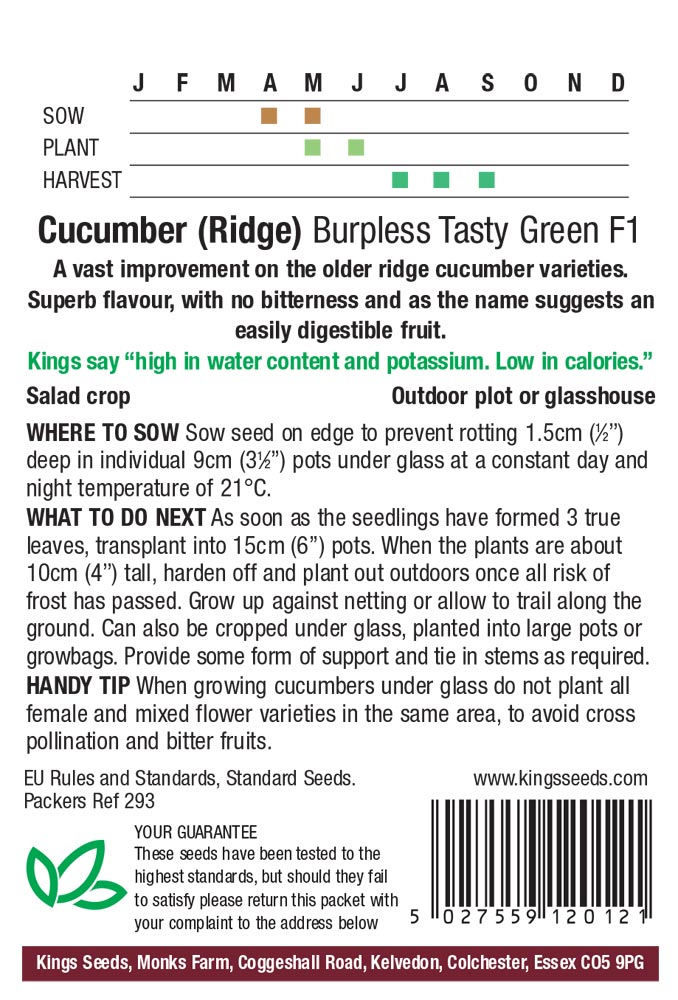 What the Americans call a “slicing” cucumber, Burpless Tasty Green F1 produces long slender fruits of excellent flavour. It is highly digestible and bitter free. Use support when grown outside or indoors.